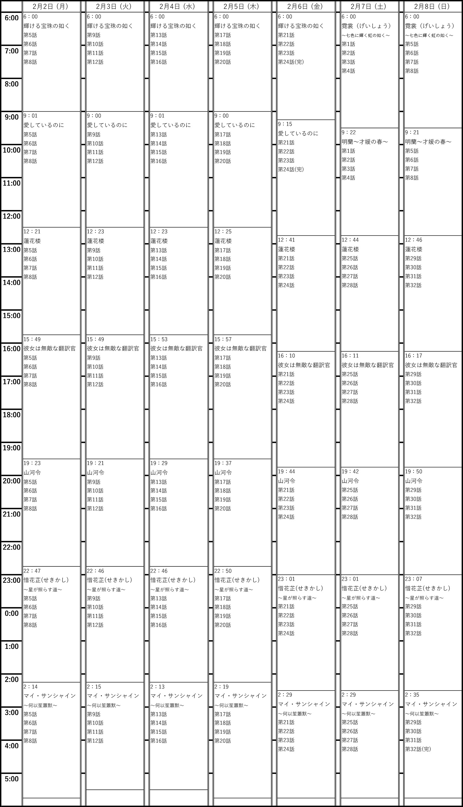 2026年2月2日(月)~2月8日(日)の番組表